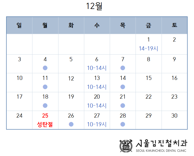 12월 25일(성탄절)은 휴진입니다.