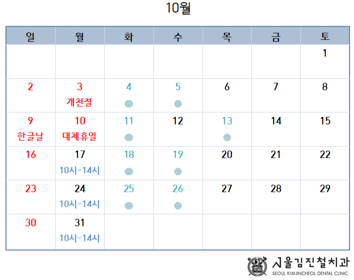 22년 10월 진료일정 안내